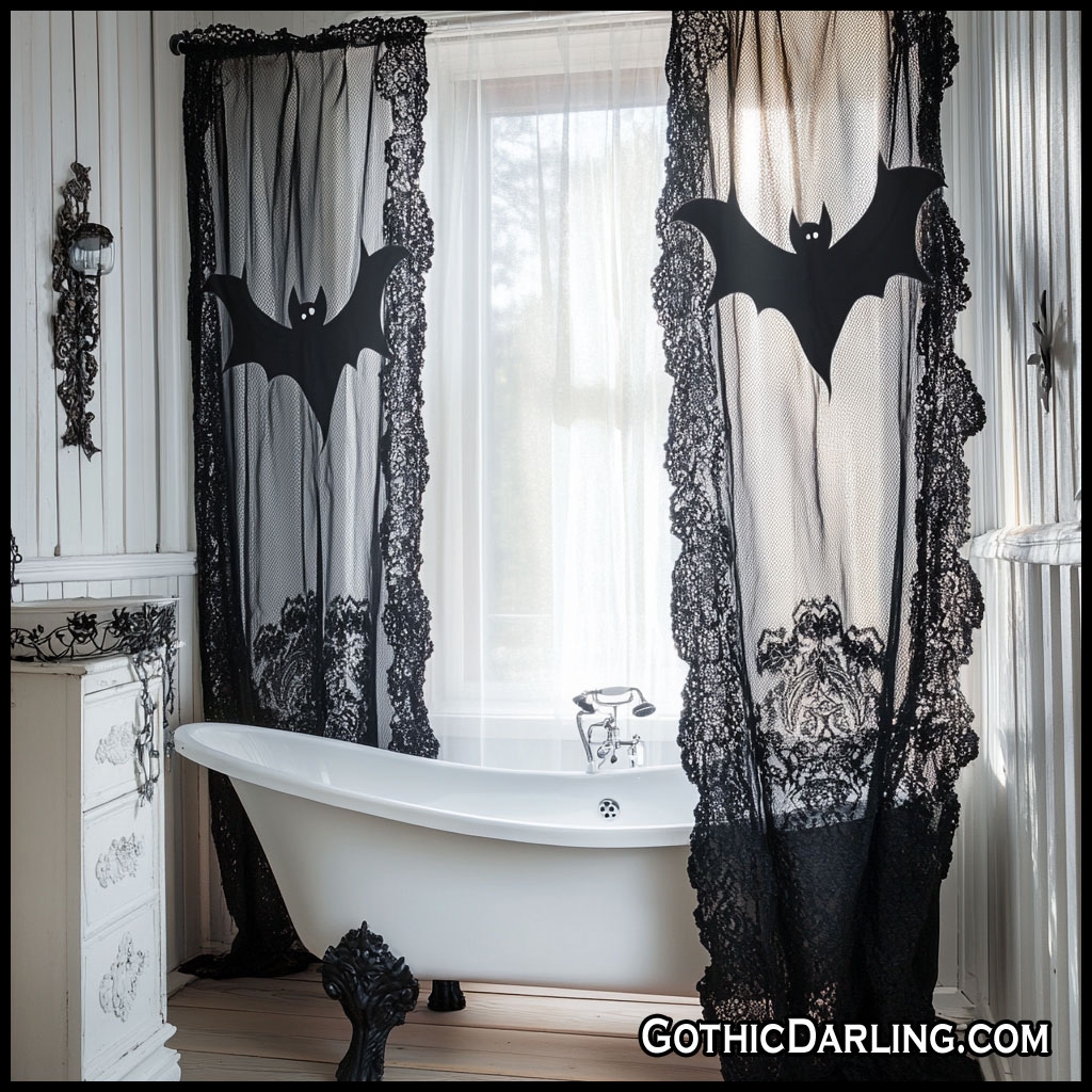 🕸️ 1. Black Lace Curtains: Setting the Mood