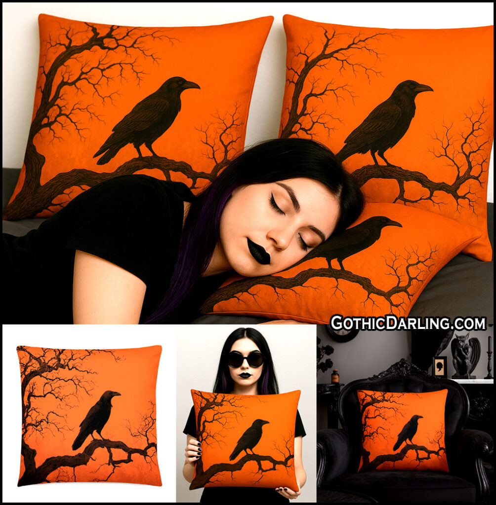 Crafted with a soft feel and vivid printing, the Orange & Black Raven in Tree Pillow blends artistry with everyday comfort. It’s a beautiful way to rest your head while surrounding yourself with the moody, Gothic aesthetic you love. Add one or more to your space and let the magic of the raven watch over your home.